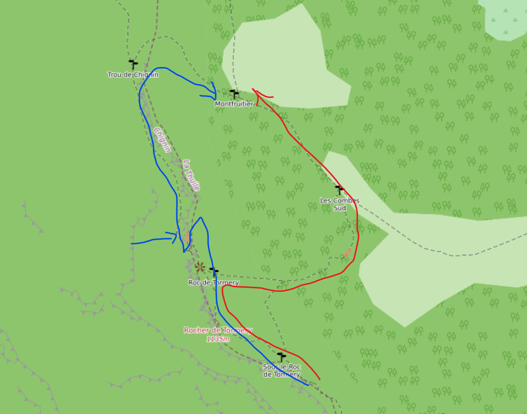 fred_1_1 a écrit:Non, ce n'est pas ça la nouveauté, c'est le passage au Tapin que l'on ne voit pas sur ta carte , entre la roche du guet et le Tormery.
