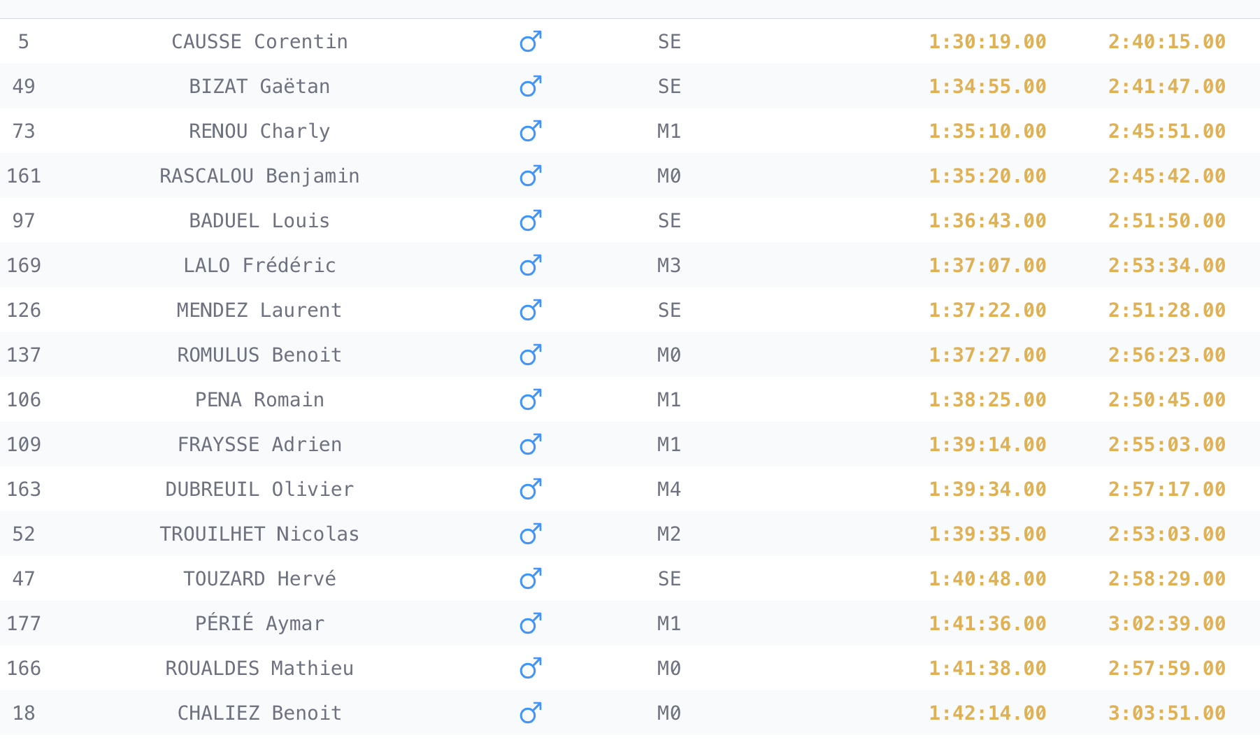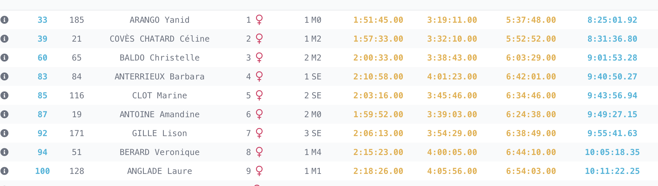 bubulle a écrit:Chez les hommes, il y avait quelques cotes (ITRA ou Betrail) élevées. Par exemple Gaël Jeannet....mais qui n'avait pas de référence notable sur du court. J'avais Vincent Garcia, vainqueur du 17k 2023 et donc Julien Pitou et Vincent Charbonnier, pour les raisons que tu as aussi indiquées....