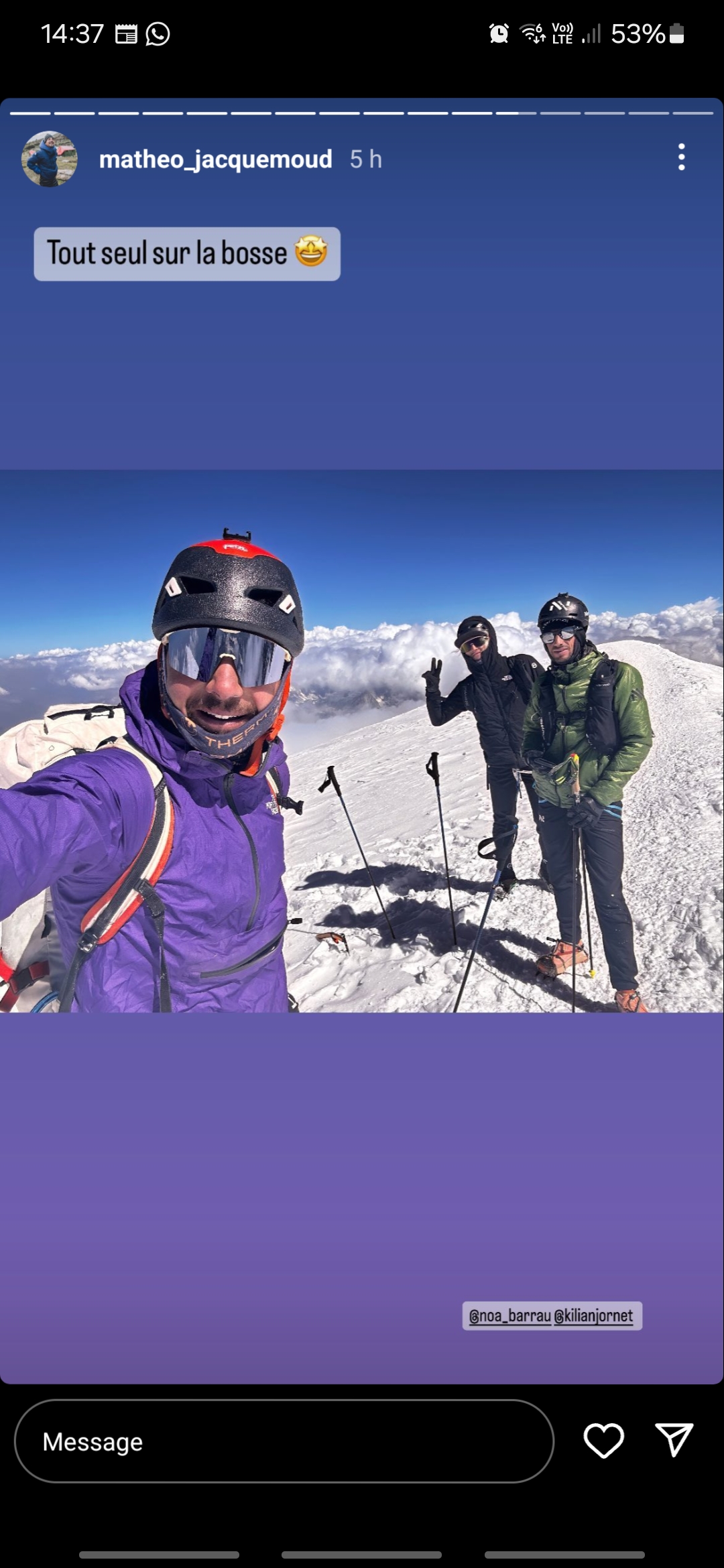 TortueTrélod a écrit:Maintenant que Mathéo Jacquemoud a publié (hier soir), une photo lui avec Kilian Jornet et Benjamin Vedrines, on peut considérer que c'est fait???