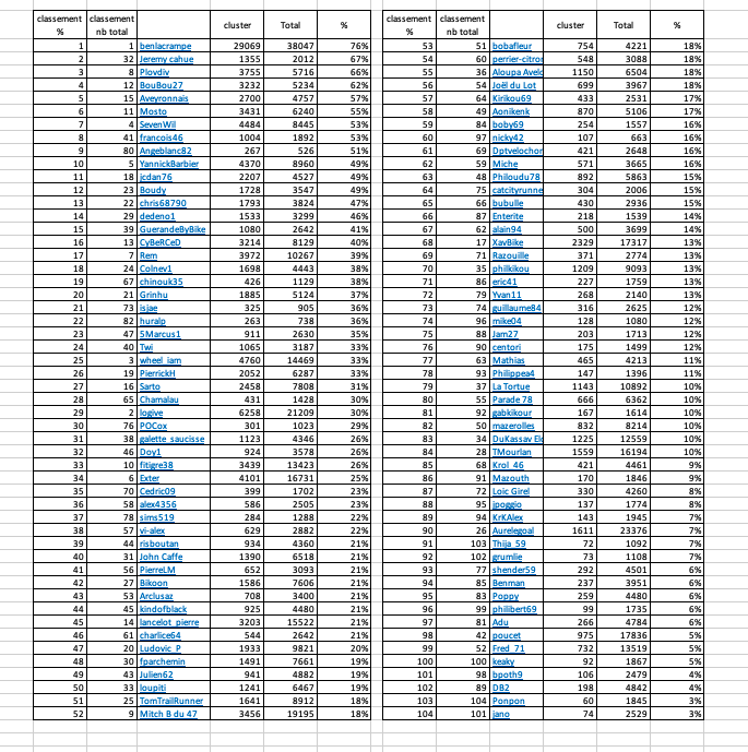 - plus le chiffre est petit et plus le kikoureur se promène de manière diversifiée