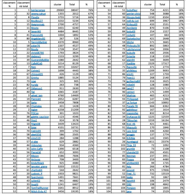 Tipiat a écrit:Arclusaz a écrit:708/3400 pour moi soit 21%