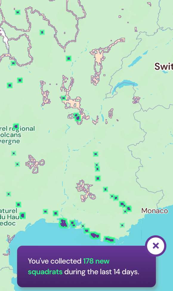 Ma dernière activité date du 10 décembre et les petits carrés apparaissent bien dans Squadrats et dans ma carte sur le JJAB. Après le 10 décembre je ne sais pas, je n'ai pas fait de nouveaux carrés.