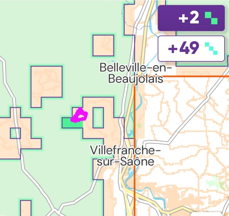 8 polissage d'une partie de l'ensemble par 4 courtes marches bien ciblées qui effacent des trous disgracieux et rapportent quand même 25 carrés de plus au cluster max (2,5 km max en tout...