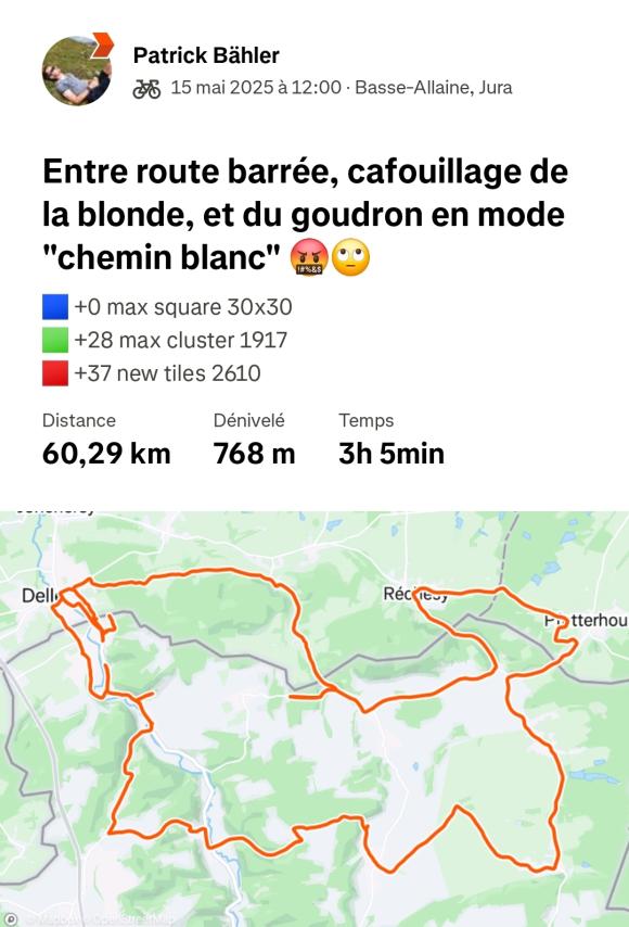 Et tant pis si je me prive de divers plaisirs plus ou moins frelatés comme les ascensions interminables ou trop pentues - je n'ai toujours pas gravi le "mur de Huy" sis à 2 km à peine de chez moi - ou les sorties qui dépassent la journée.
