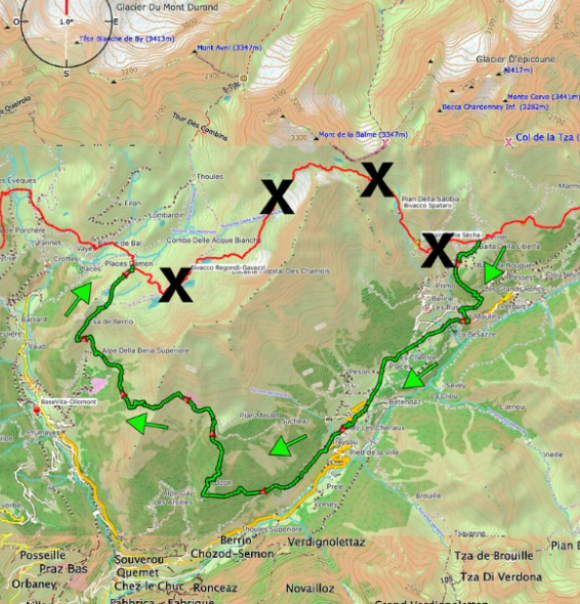 C’est bizarre car à partir du 11ème ça pointe à Oyace donc pas de Mont gelé pour Jano !?!