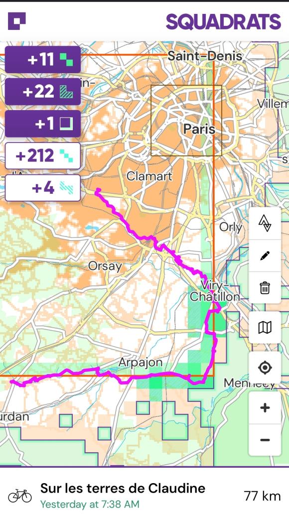Sinon on peut pousser le tuc à l'extrême. Prendre la voiture, faire des pauses 'pipi' tous les 1.5km pour valider chaque carré du trajet![]()