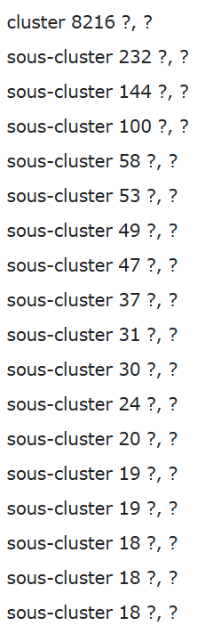 Arclusaz a écrit:Puis, on a eu un ? pour tous les nouveaux clusters ou les clusters modifiés (les clusters anciens avaient donc un nom).