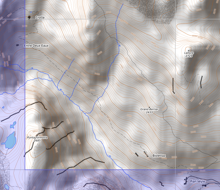Si c'est bien ça (et effectivement, ça connecte alors le Val Veni et le Val Ferret), alors tu vends que la montée à Bassa Sera via Crotte doit être un très beau sentier...:-)